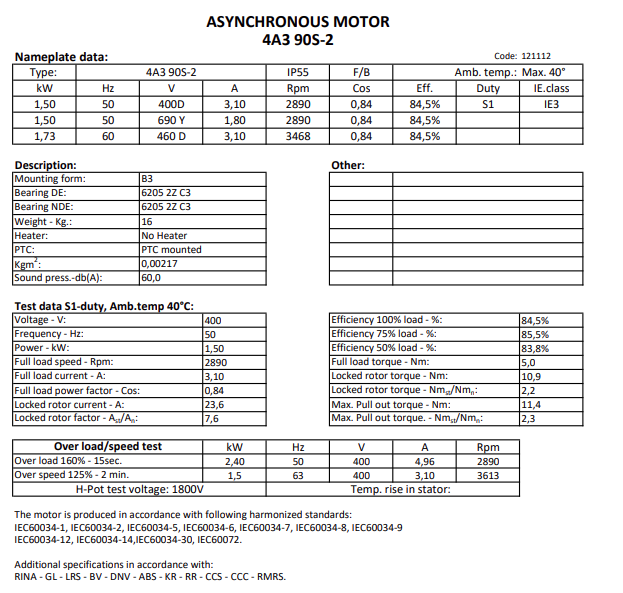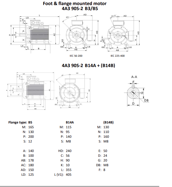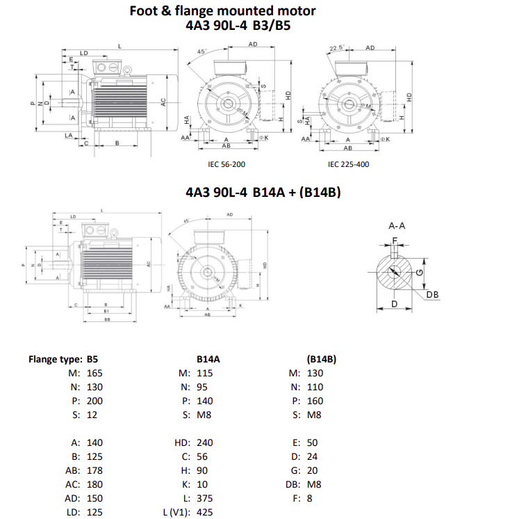 型號(hào):4A3 90L-4 B35 (with base and flange plate)