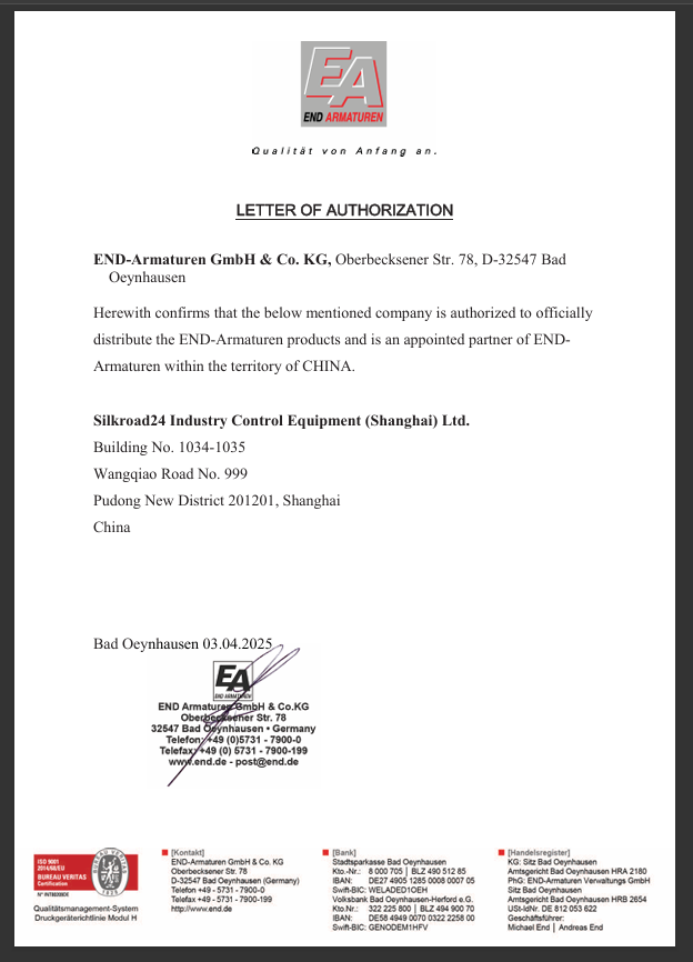 如何聯(lián)系END-Armaturen GmbH的上海代理商?